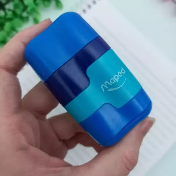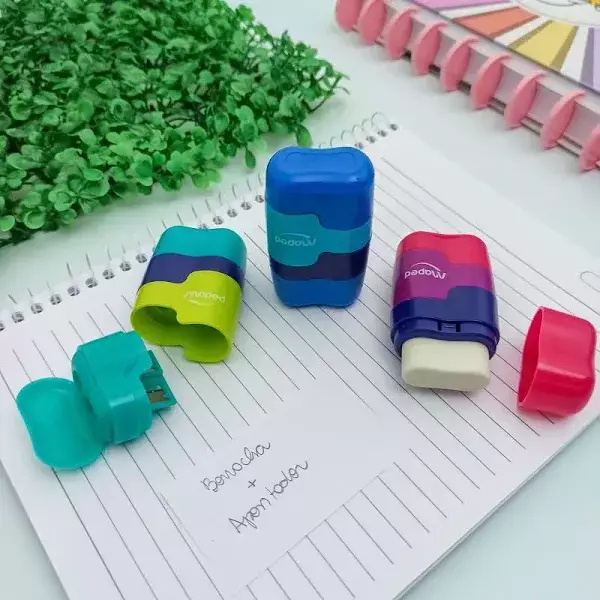 Apontador com borracha: divertidas partes que se encaixam. 1 refil de borracha. 2 furos: padrão e jumbo. Apontador com depósito. Cores sortidas: azul, rosa e verde.Produto certificado de acordo com as portarias INMETRO 262/2012 e 481/2010 e registrado sob o número 004951/2019PRODUTO VENDIDO INDIVIDUALMENTE, CORES SORTIDAS, CONSULTE A DISPONIBILIDADE EM ESTOQUE
