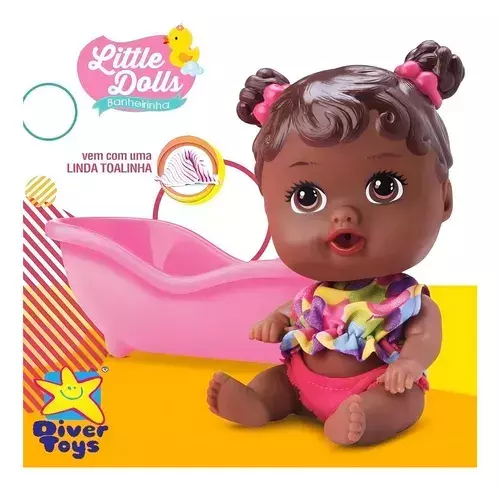 A Boneca Little Dolls Banheirinha - Negra é a companheira perfeita para a hora do banho e da brincadeira! Com um design encantador e adorável, essa boneca promete muitas horas de diversão enquanto as crianças exploram o universo dos cuidados e da imaginação.