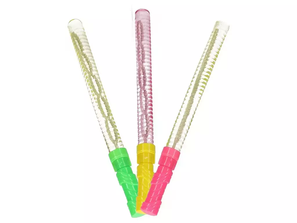 1 Brinquedo de Bolhas Para Crianças A diversão é garantida com o Brinquedo que faz diversas bolhas em segundos em forma de Espada, ideal para festas infantis, lembrancinhas e prendas. NÃO PRECISA DE PILHAS, as bolhas se formam com o movimento do bastão com 5 furos para sair maior quantidade de bolhas.