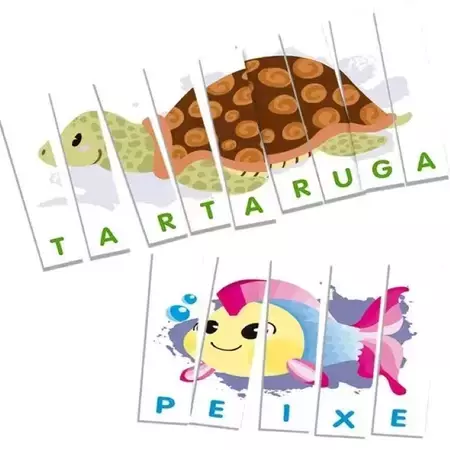 Este brinquedo auxilia no aprendizado das letras, na formacao de palavras, coordenacao motora e desenvolvimento cognitivo.