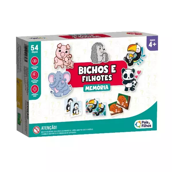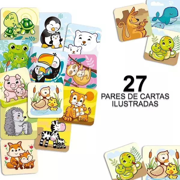 Proporcione momentos de diversão e aprendizado para crianças e adultos com este encantador jogo da memória! Com 54 peças, ele apresenta adoráveis famílias de animais, ajudando a desenvolver memória, atenção e habilidades motoras de forma lúdica e envolvente.