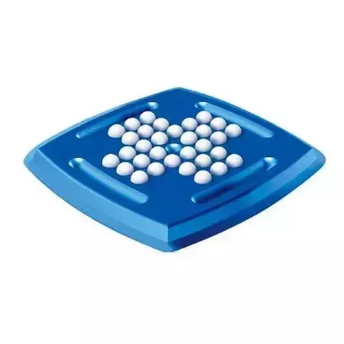 Distribua as 32 bolinhas no tabuleiro, deixando vazia apenas a posição central. Para realizar um movimento, o jogador deve pegar uma peça e fazê-la 'saltar' sobre outra peça, sempre na horizontal ou na vertical, terminando em um espaço vazio. A peça que foi saltada é retirada do tabuleiro. O jogo termina quando não é mais possível fazer nenhum outro movimento. O objetivo é restar apenas uma bolinha no tabuleiro ao final.