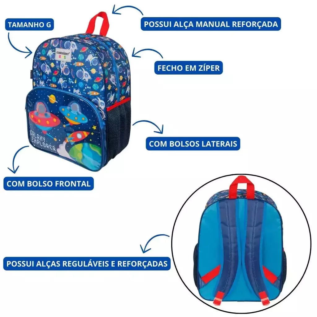 A Mochila G Infantil Galáxia Azul é uma escolha estilosa e funcional para crianças que adoram o tema espacial. Com um design inspirado no universo e nas estrelas, ela combina praticidade e um visual moderno.