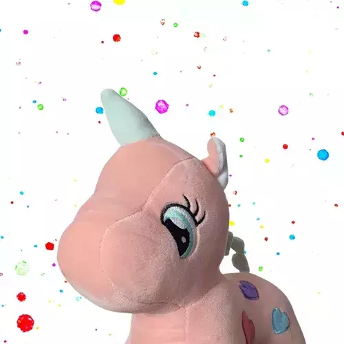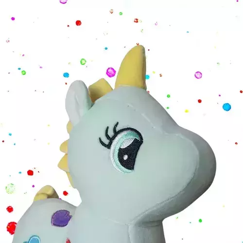 Este adorável unicórnio é feito de um material super macio e aconchegante, perfeito para abraços. Disponível em cores sortidas, cada modelo possui um design único e encantador, com detalhes vibrantes que vão conquistar o coração de crianças e adultos.