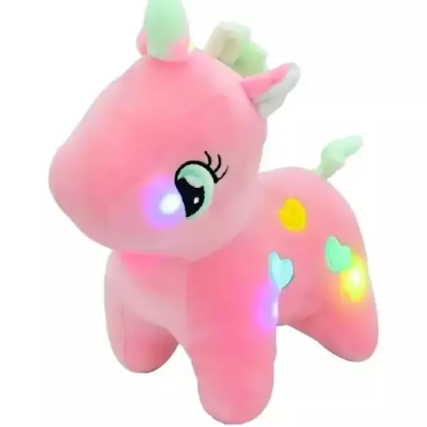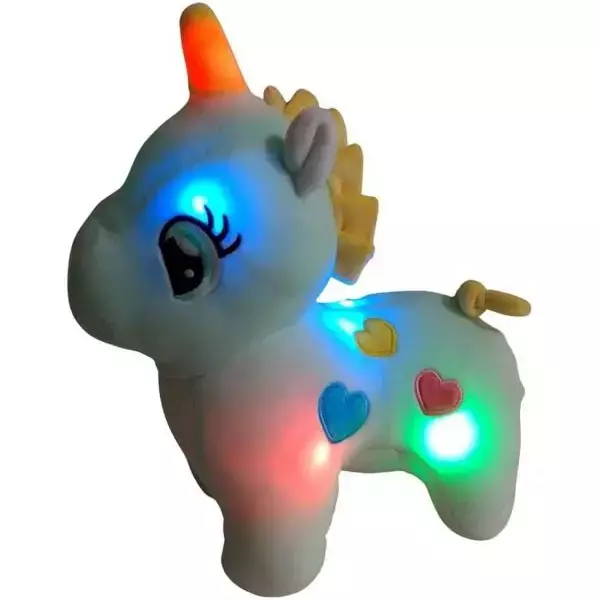 Além de seu visual encantador, o unicórnio conta com luzes LED que brilham suavemente, criando uma atmosfera mágica durante a noite. Ideal para ser o companheiro de sonhos de qualquer criança, essa pelúcia também é um ótimo item decorativo para quartos.