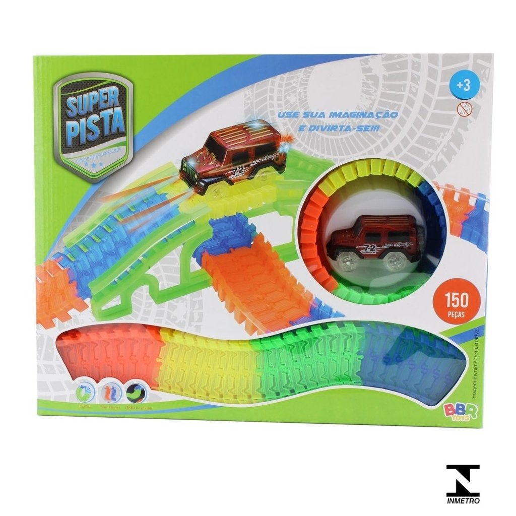 Pista de carrinho infantil de brinquedo fluorescente 150 peças - Bbr Toys