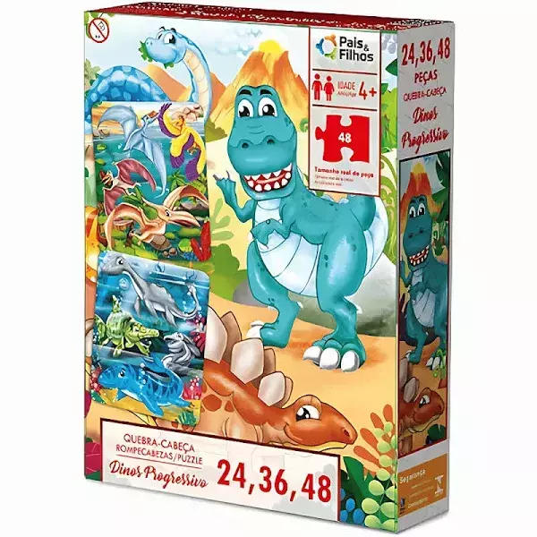 Quebra-Cabeça Progressivo - 24, 36 e 48 Peças - Dinos - Pais e Filhos